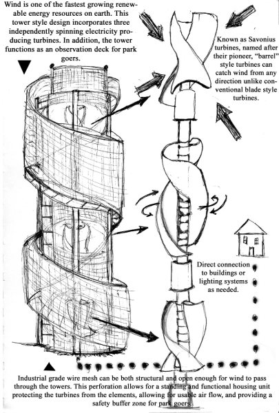 Concept for public art wind turbine and wildlife viewing tower